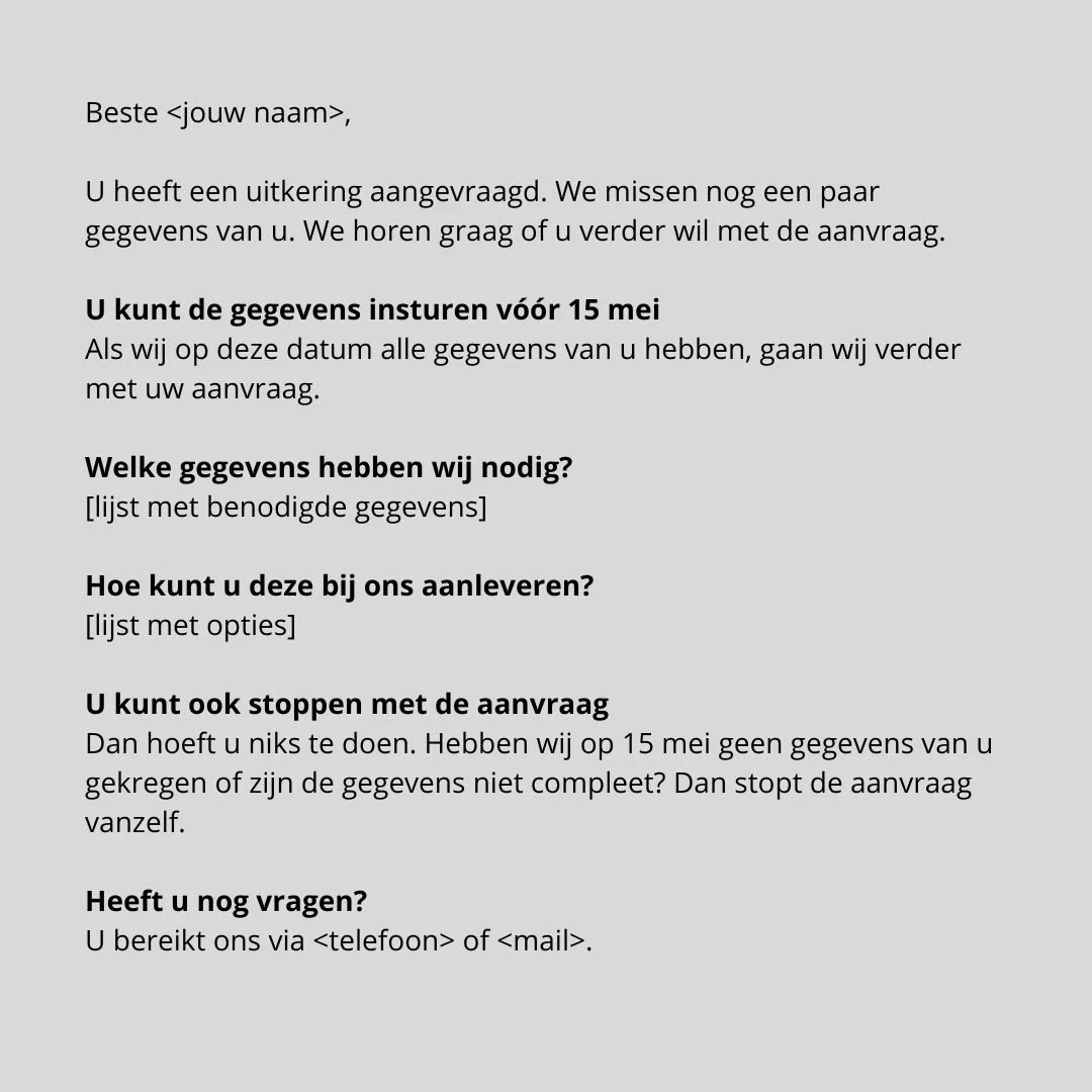 Wanneer je deze drie elementen verwerkt in je brieven, gebeuren er twee dingen. Inwoners leveren sneller en beter hun gegevens aan. En de communicatie verloopt rustiger, vriendelijker en efficiënter Maar hoe doe je dat dan binnen een strak juridisch proces?
